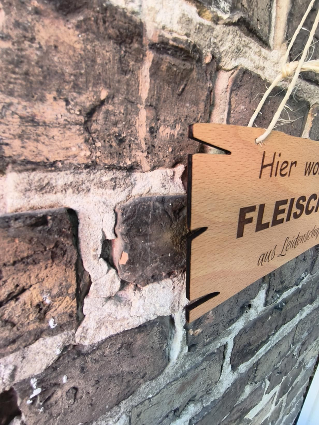 Dieses dekorative Holzschild mit der Aufschrift „Hier wohnt ein Fleischer aus Leidenschaft“ ist ein echter Blickfang und bringt Charakter und Humor an jede Haustür, Werkstatt, Küche oder Metzgerei.