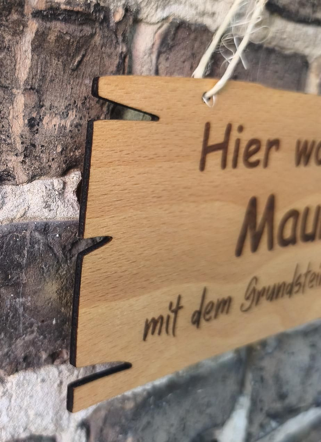 Dieses charmante Holzschild ist das perfekte Geschenk für jeden Maurer oder Bauprofi. Mit der liebevoll gravierten Aufschrift „Hier wohnt ein Maurer mit dem Grundstein fürs Glück“ sorgt es für ein herzliches Willkommen an jeder Haustür.